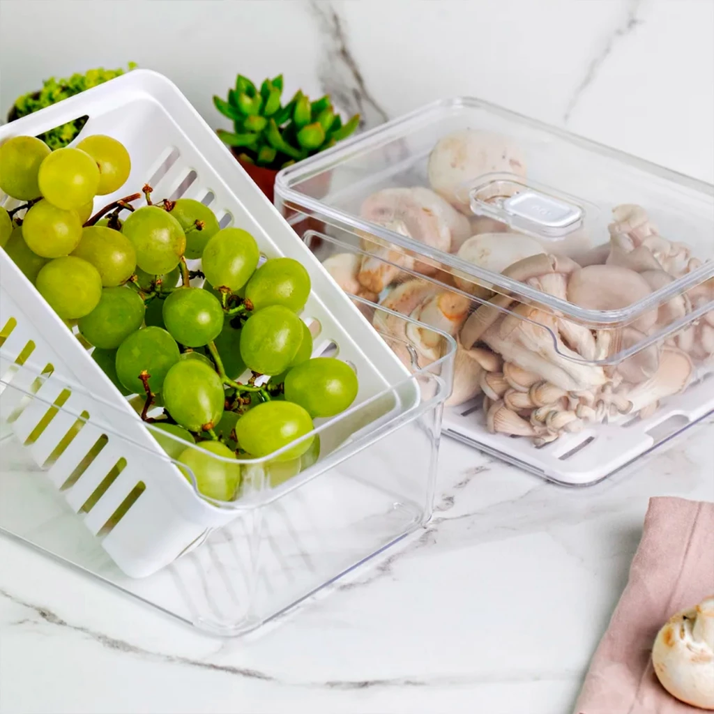 O design transparente facilita a visualização, deixando sua geladeira sempre organizada, bonita e funcional.