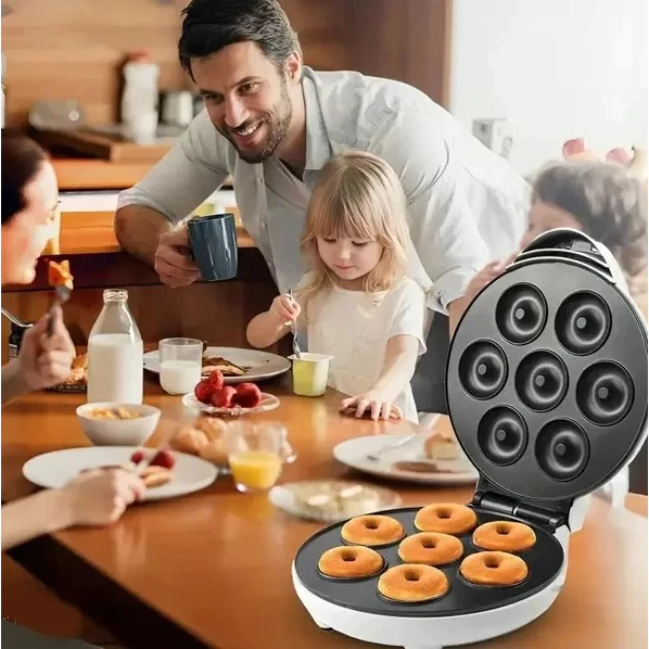 A Mini Máquina Elétrica de Donuts, Rosquinhas e Waffles foi desenvolvida para facilitar o preparo de lanches deliciosos e criativos. Com superfície antiaderente e 7 divisórias, ela permite fazer várias porções ao mesmo tempo, sem grudar e sem bagunça.
