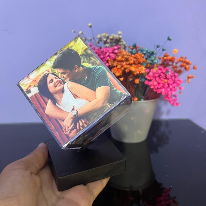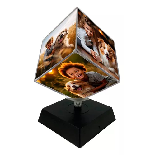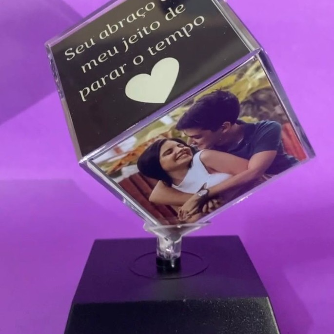 O Cubo das memórias é feito em acrílico de alta qualidade, com seis faces para você eternizar os melhores momentos.